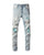 UNLOCK YOUR DRIP. The Aurin jeans come in a faded light blue wash with bold ripped details that reveal bright blue fabric underneath. Frayed textures across the knees add a rugged edge, while the slim fit keeps them modern and versatile. Made with durable denim, they’re built for comfort and everyday streetwear style.