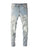 - Slim fit with distressed finish