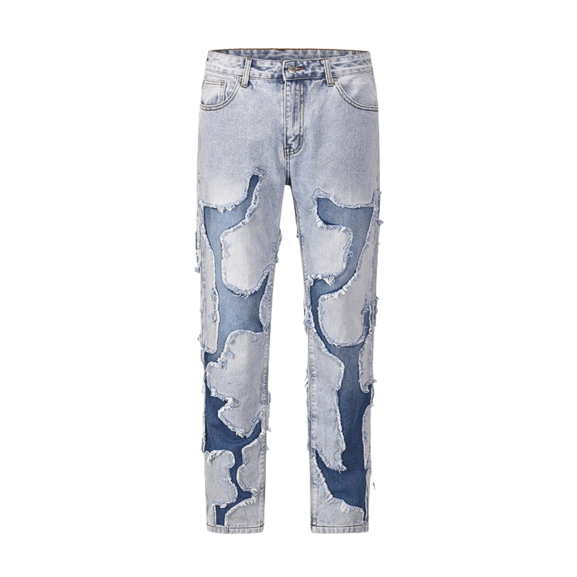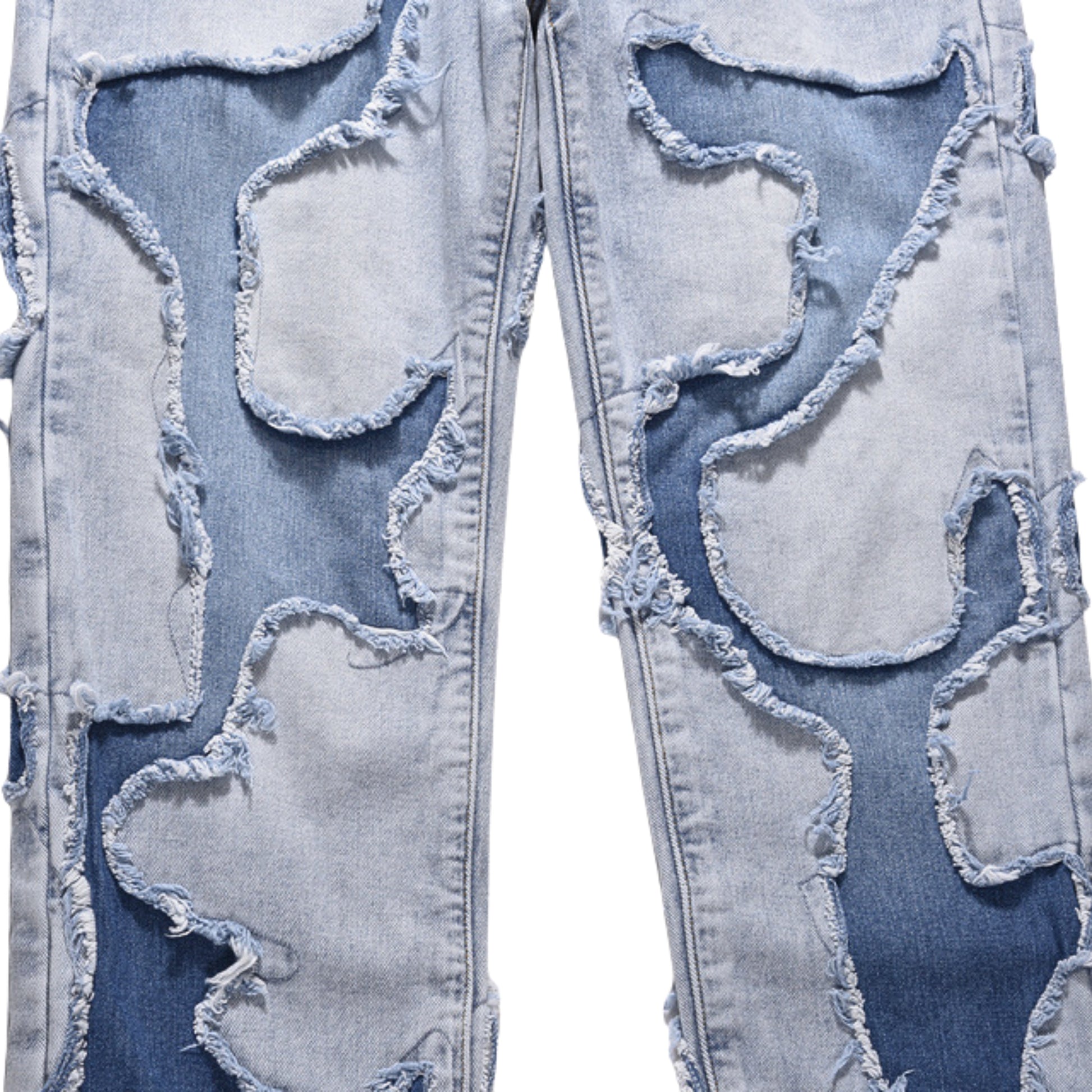 UNLOCK YOUR DRIP. The Hayate jeans bring art and edge together with bold patchwork and rough-cut detailing. The layered denim textures give a worn, vintage feel that stands out anywhere.