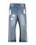 - Distressed denim with paint splatter details