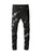- Black denim with glossy star graphics